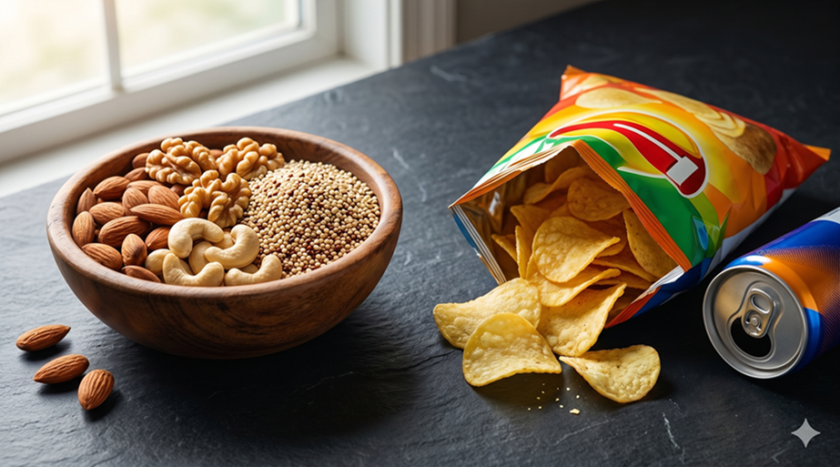 - Hành động: Sử dụng các loại hạt giàu đạm như Quinoa (Diêm mạch) hoặc hạt bí xanh để đảm bảo cơ thể không bị thiếu hụt protein.
