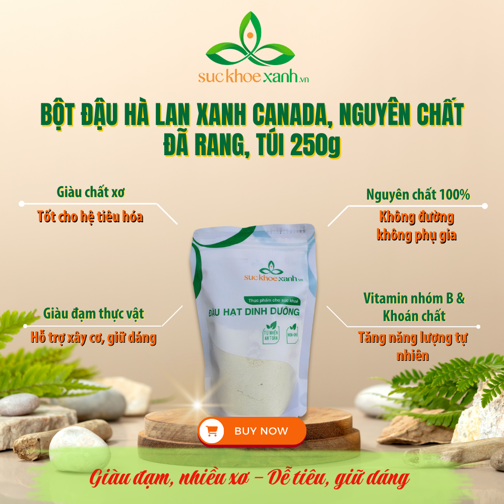 Bột Đậu Hà Lan Rang Chín không chỉ là một nguồn dinh dưỡng tốt mà còn là một lựa chọn lý tưởng cho ẩm thực sức khỏe. Hãy thêm vào thực đơn hàng ngày của bạn và tận hưởng hương vị và lợi ích dinh dưỡng mà sản phẩm mang lại!