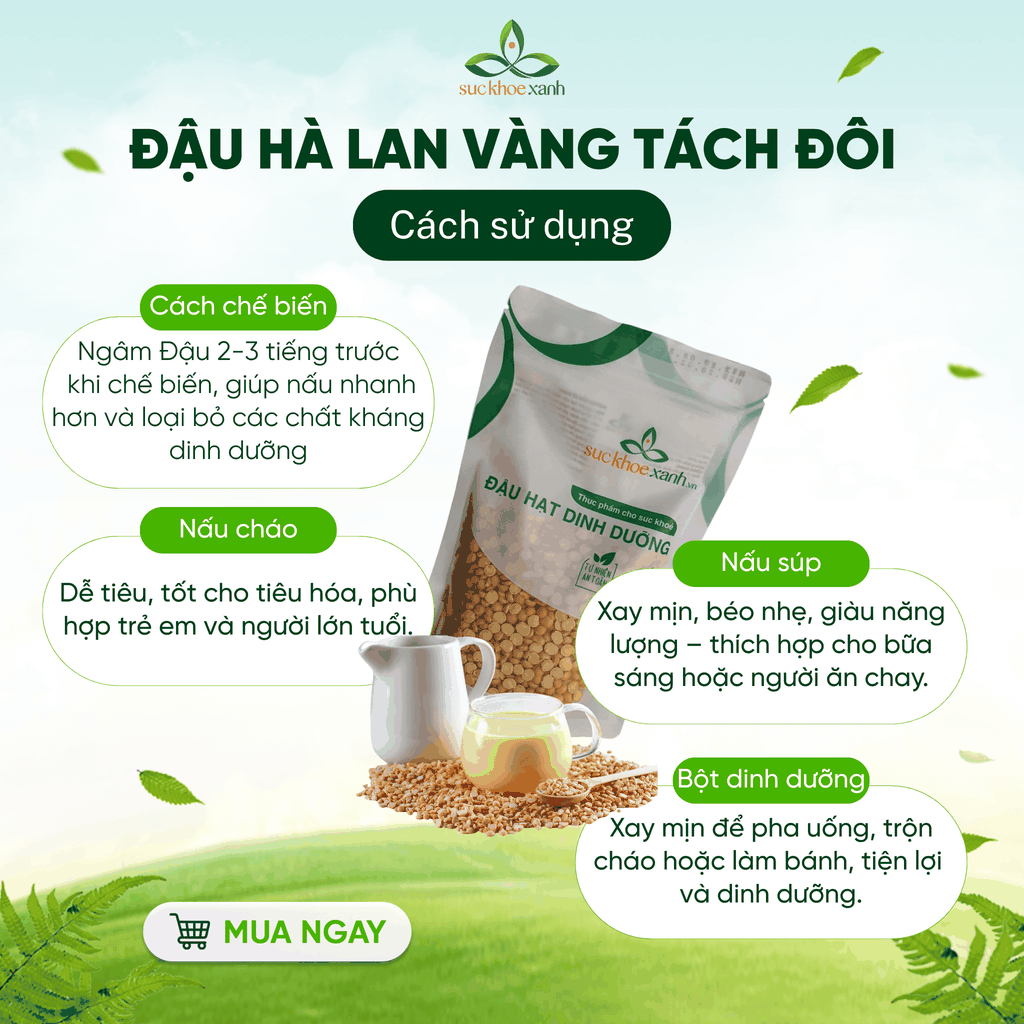 Đậu Hà Lan Vàng (Yellow Pea) là lựa chọn hoàn hảo cho bữa ăn dinh dưỡng và lành mạnh. Hãy thêm vào giỏ hàng của bạn ngay hôm nay để trải nghiệm hương vị và lợi ích tuyệt vời từ sản phẩm này!