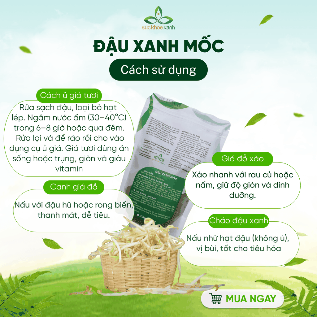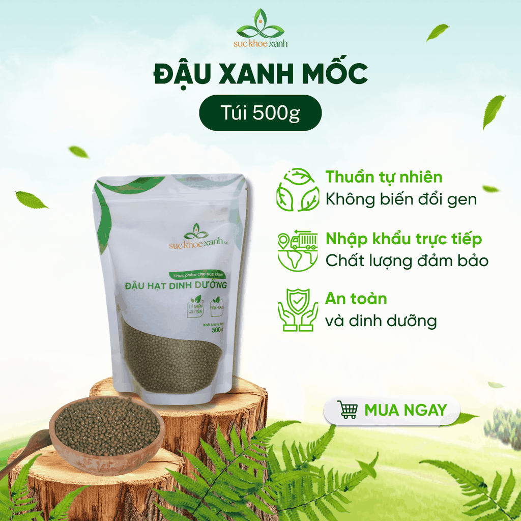 Đậu xanh mốc Myanmar hạt nhỏ, xanh đậm, giàu protein thực vật, chất xơ và vitamin, giúp thanh nhiệt, giải độc và hỗ trợ tiêu hóa. Nguyên liệu quen thuộc trong món chè, cháo. Với tỉ lệ nãy mầm >99%, là loại đậu rất phù hợp để làm giá đỗ. Nhập khẩu chính ngạch, sạch, phù hợp cho cả khách sỉ và lẻ toàn quốc.