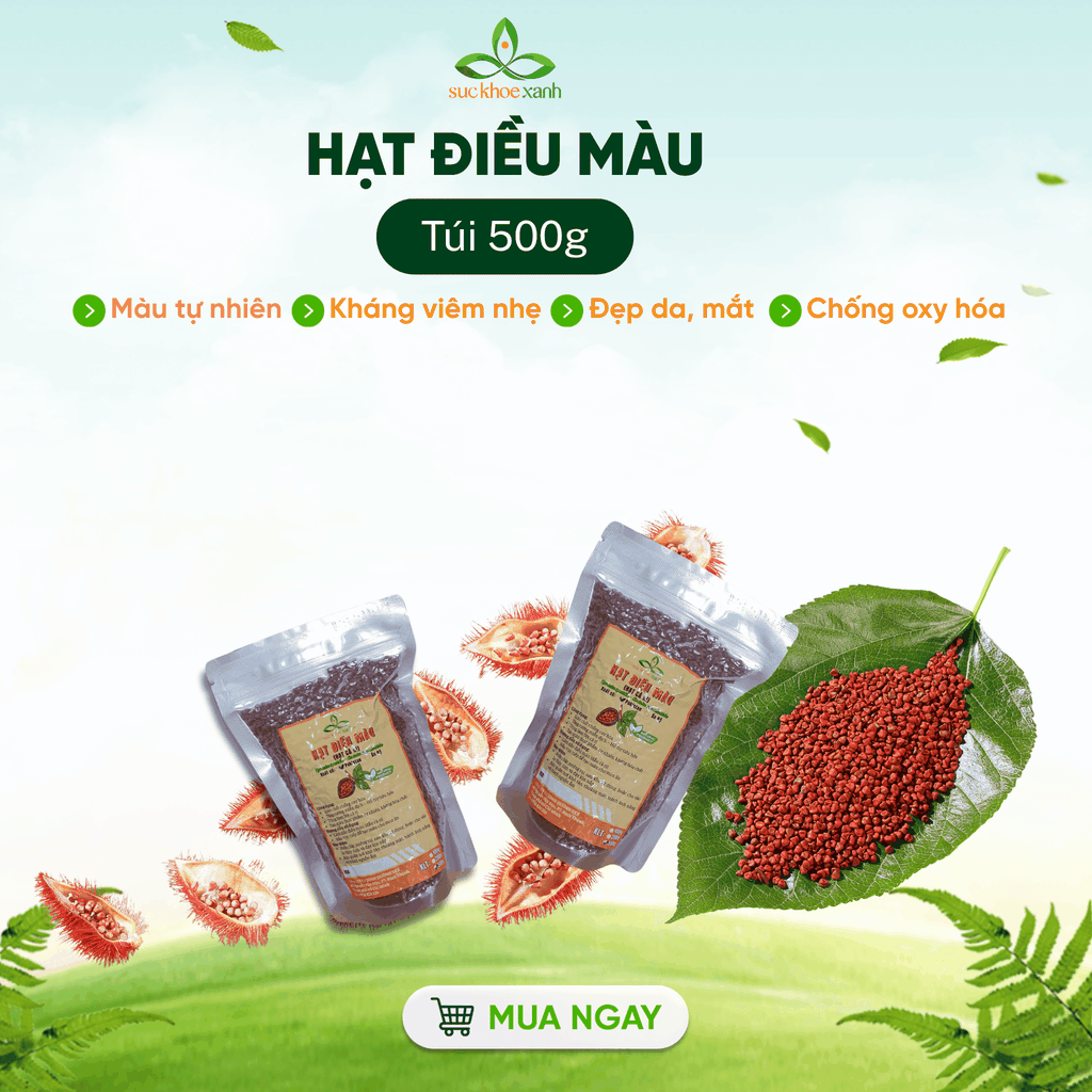 Hạt điều màu, hay còn gọi là hạt Annatto, là loại gia vị tạo màu tự nhiên được ưa chuộng trong ẩm thực nhờ sắc vàng cam tươi đẹp, giúp món ăn thêm hấp dẫn mà không cần phẩm màu hóa học. Sản phẩm được nhập khẩu và tuyển chọn kỹ lưỡng từ vùng trồng đạt chuẩn, đảm bảo không biến đổi gen (Non-GMO), không chất bảo quản, phù hợp xu hướng ăn uống sạch và an toàn. Hạt điều màu dạng khô, hạt to, màu sắc đậm tự nhiên, thích hợp cho cả hộ gia đình và khách hàng sỉ, nhà hàng, cơ sở sản xuất thực phẩm.