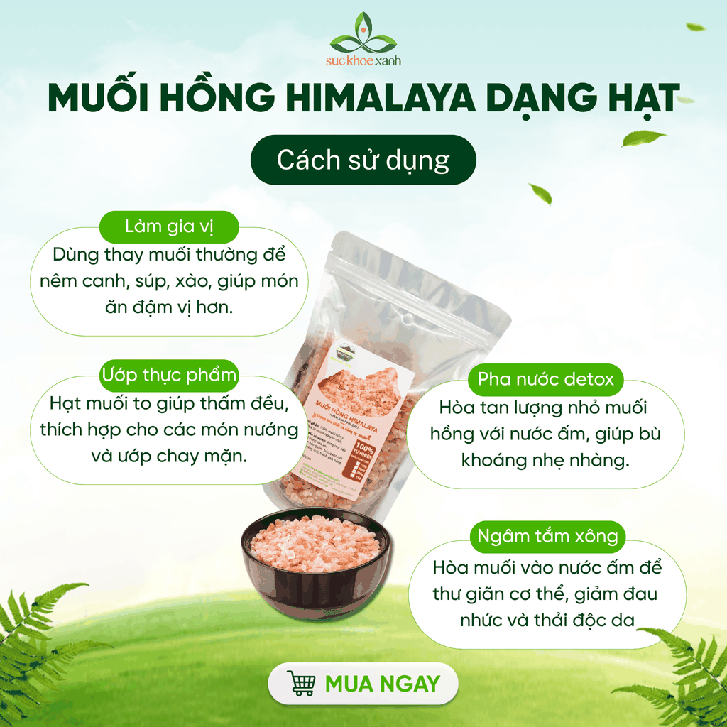 Muối Hồng Himalaya là lựa chọn hoàn hảo cho một lối sống lành mạnh và tự nhiên. Hãy thêm vào giỏ hàng của bạn ngay hôm nay để trải nghiệm sự khác biệt!