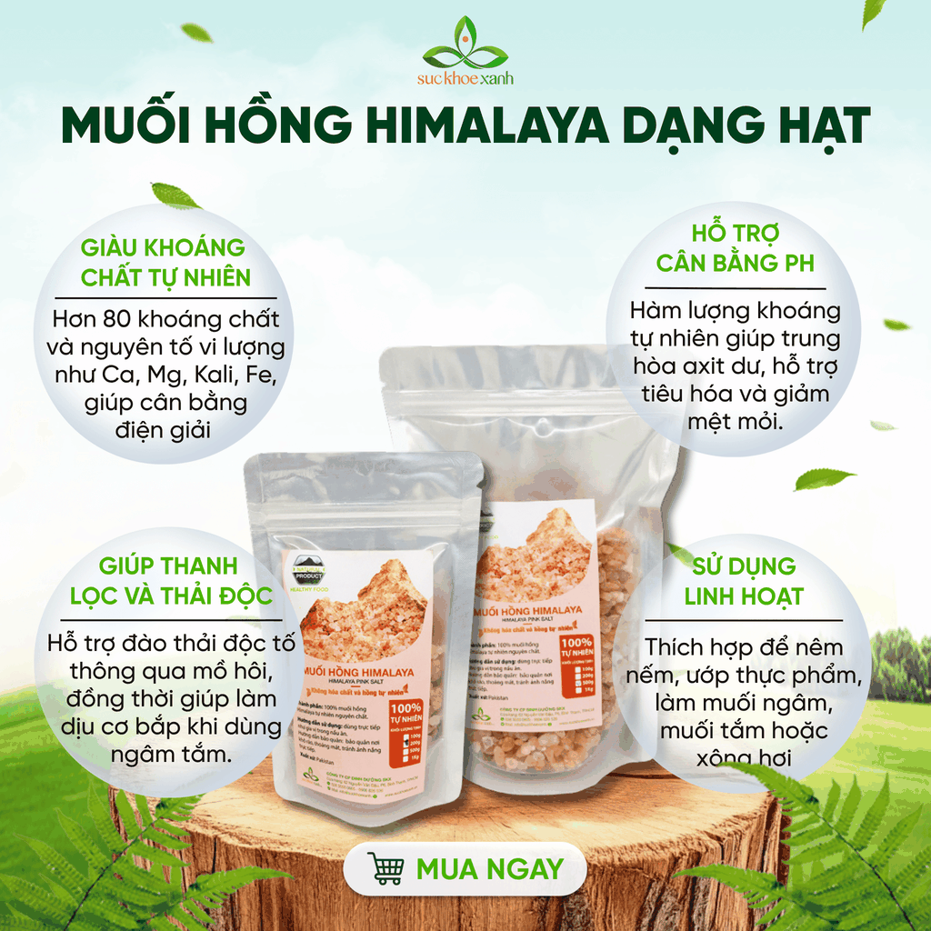 Thành Phần Dinh Dưỡng: Muối Hồng Himalaya chứa hơn 80 loại khoáng chất và nguyên tố vi lượng quan trọng như sắt, canxi, magiê, và kali. Những thành phần này không chỉ tạo nên màu hồng đặc trưng mà còn cung cấp nhiều lợi ích sức khỏe.