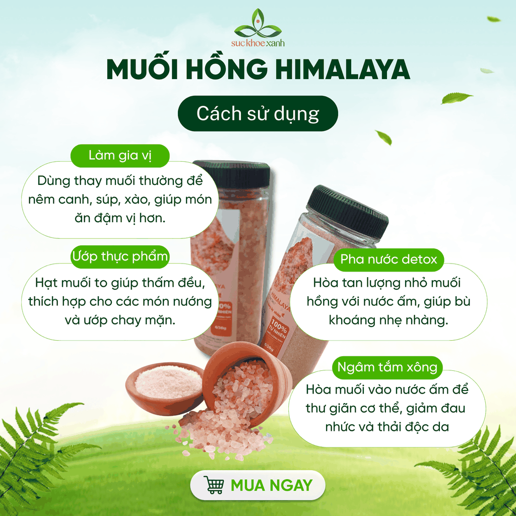 Muối Hồng Himalaya là lựa chọn hoàn hảo cho một lối sống lành mạnh và tự nhiên. Hãy thêm vào giỏ hàng của bạn ngay hôm nay để trải nghiệm sự khác biệt!