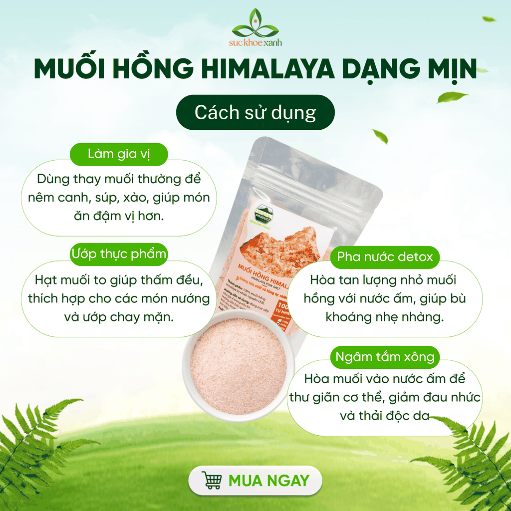 Muối Hồng Himalaya là lựa chọn hoàn hảo cho một lối sống lành mạnh và tự nhiên. Hãy thêm vào giỏ hàng của bạn ngay hôm nay để trải nghiệm sự khác biệt!