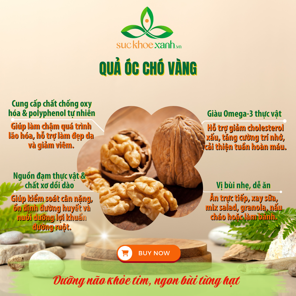• Nguồn Gốc Tự Nhiên: Được chọn lọc từ những quả óc chó chất lượng cao.